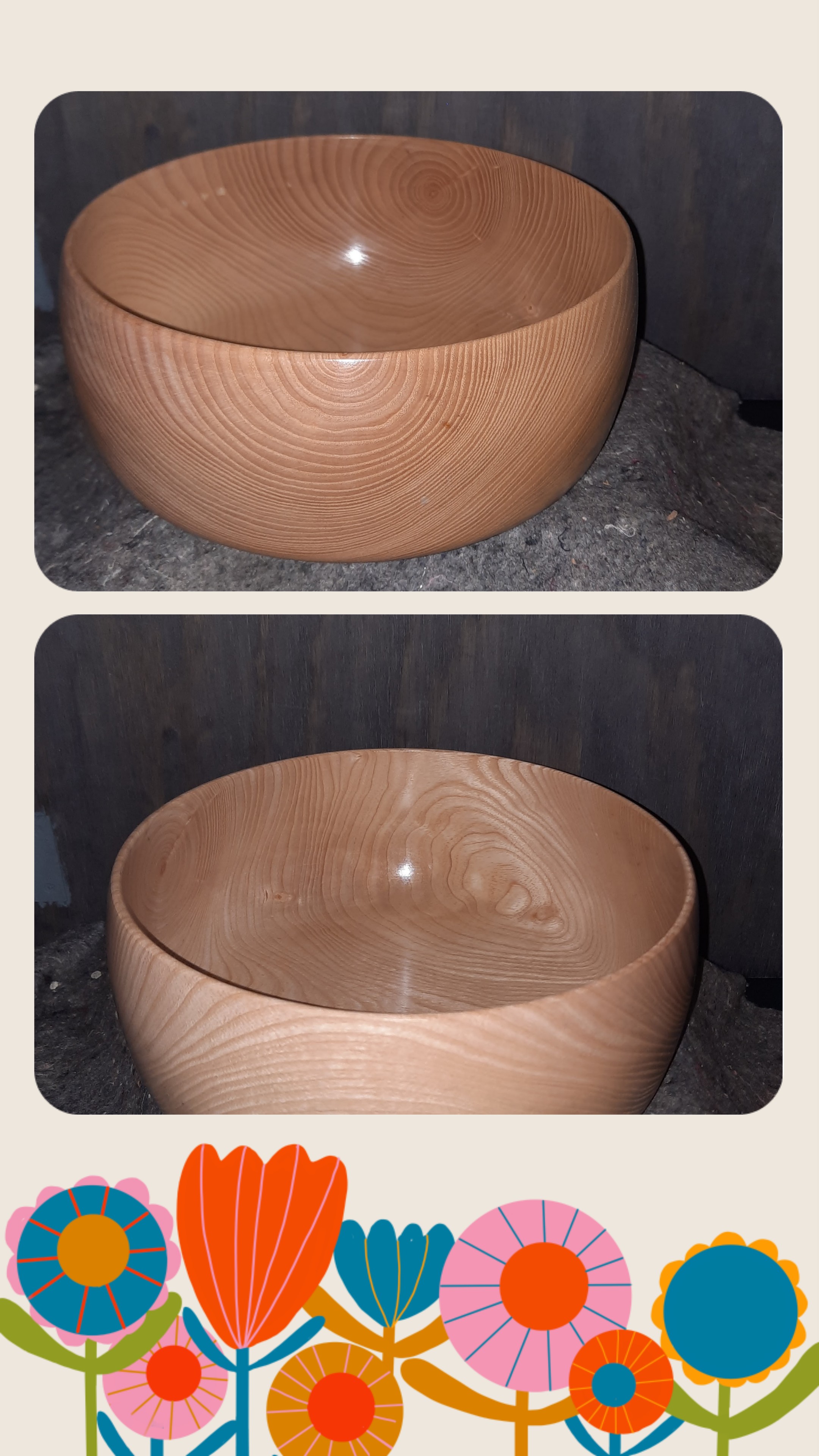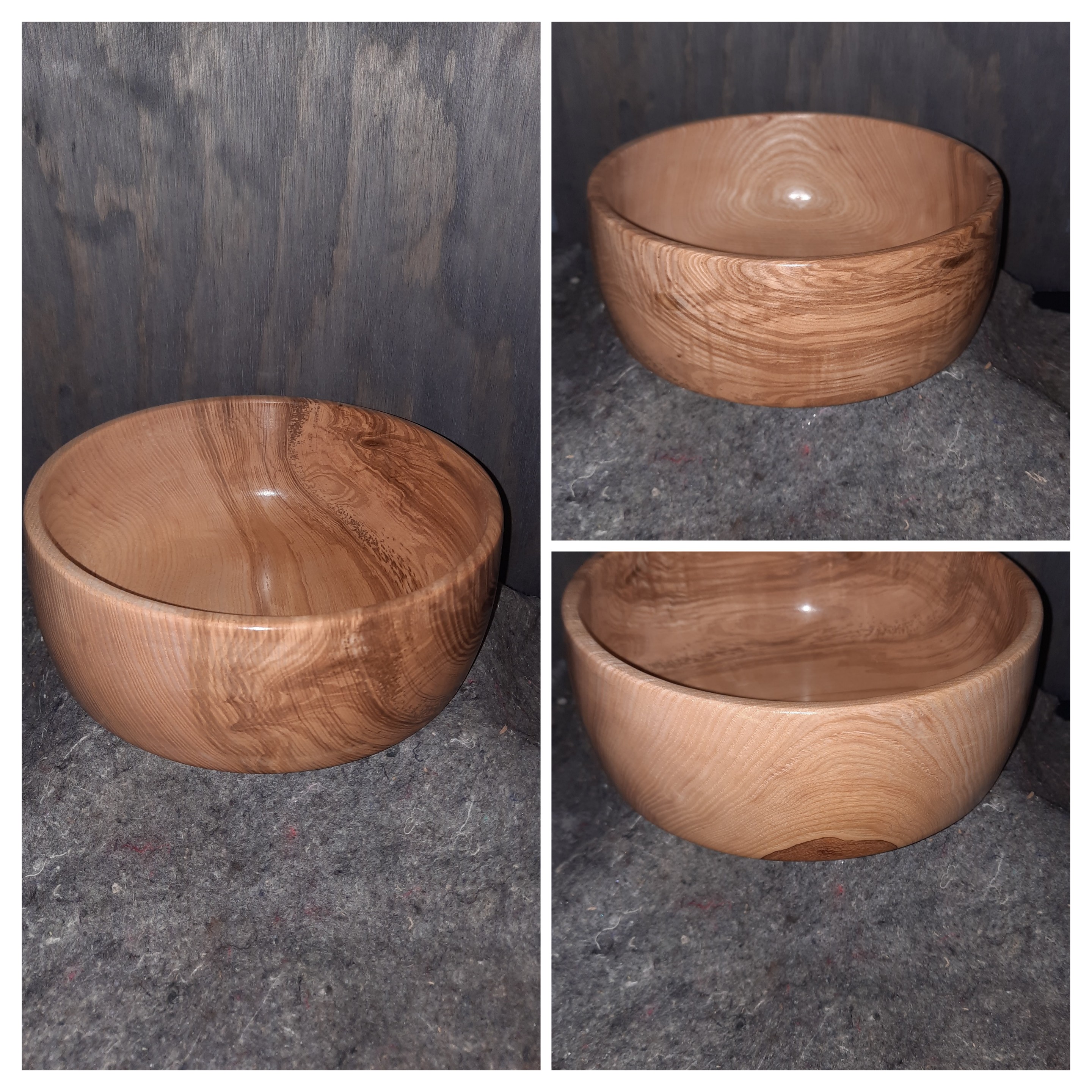 skål drejet i asketræ hvor der har været svampeangreb, det giver meget spil i træet