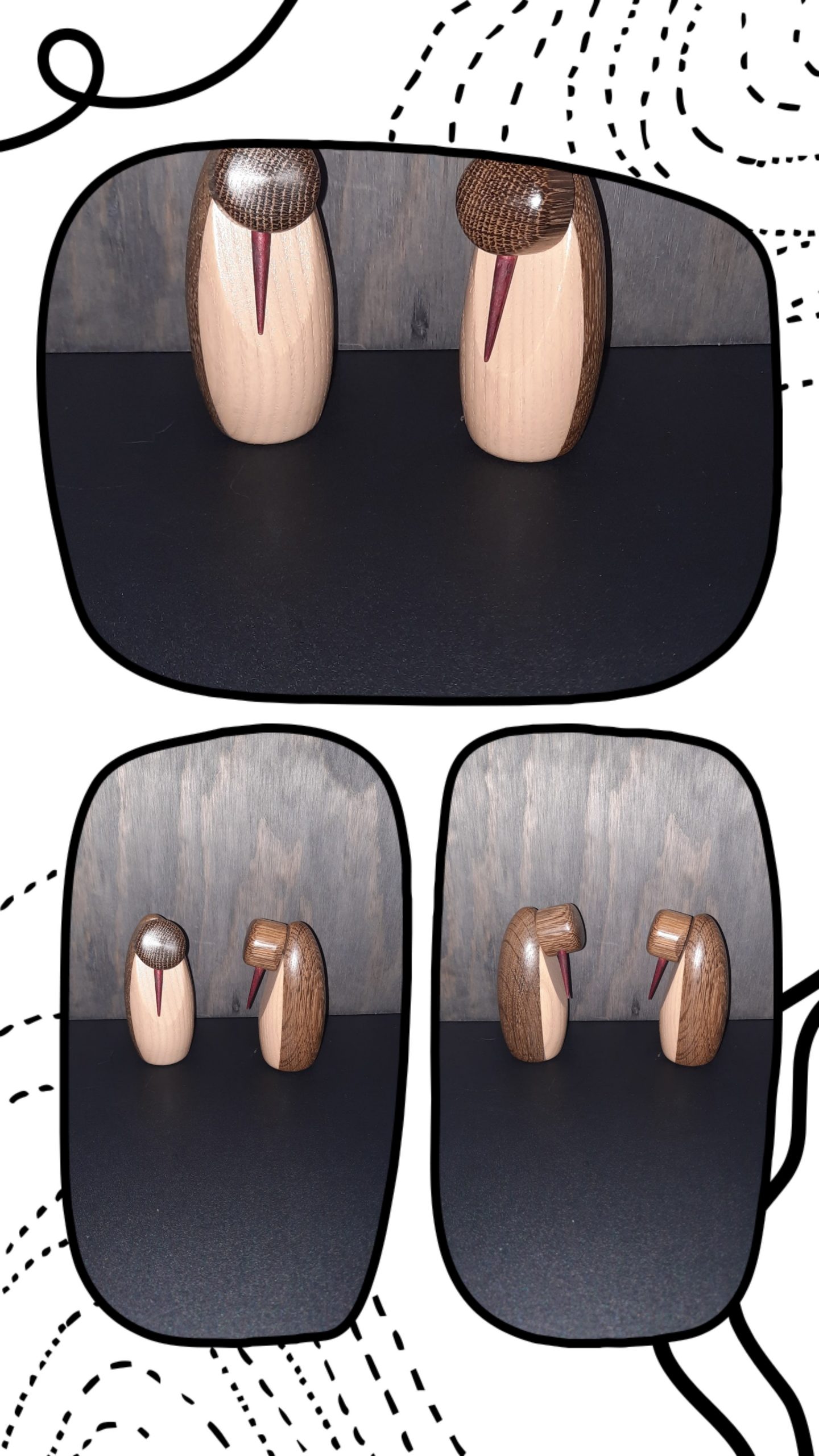 lavet i røget eg med bryst i lys ahorn/ lys ask. hoved kan drejes. højden er ca 13 cm